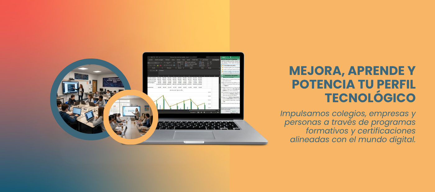 Mejora, aprende y potencia tu perfil tecnológico Impulsamos colegios, empresas y personas a través de programas formativos y certificaciones alineadas con el mundo digital.